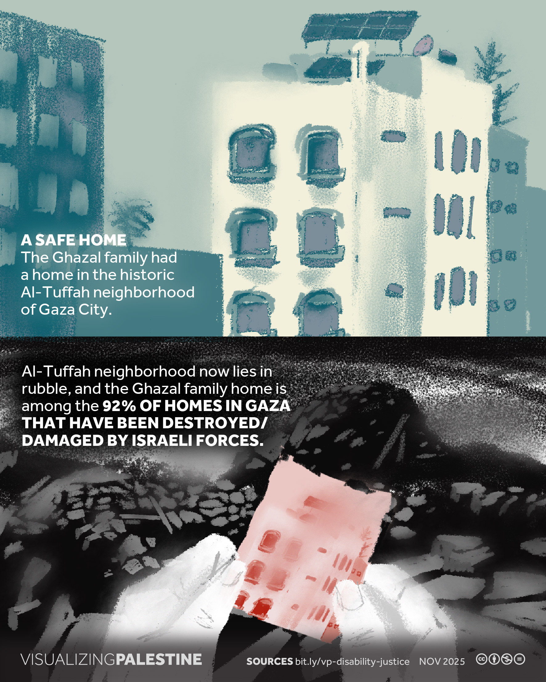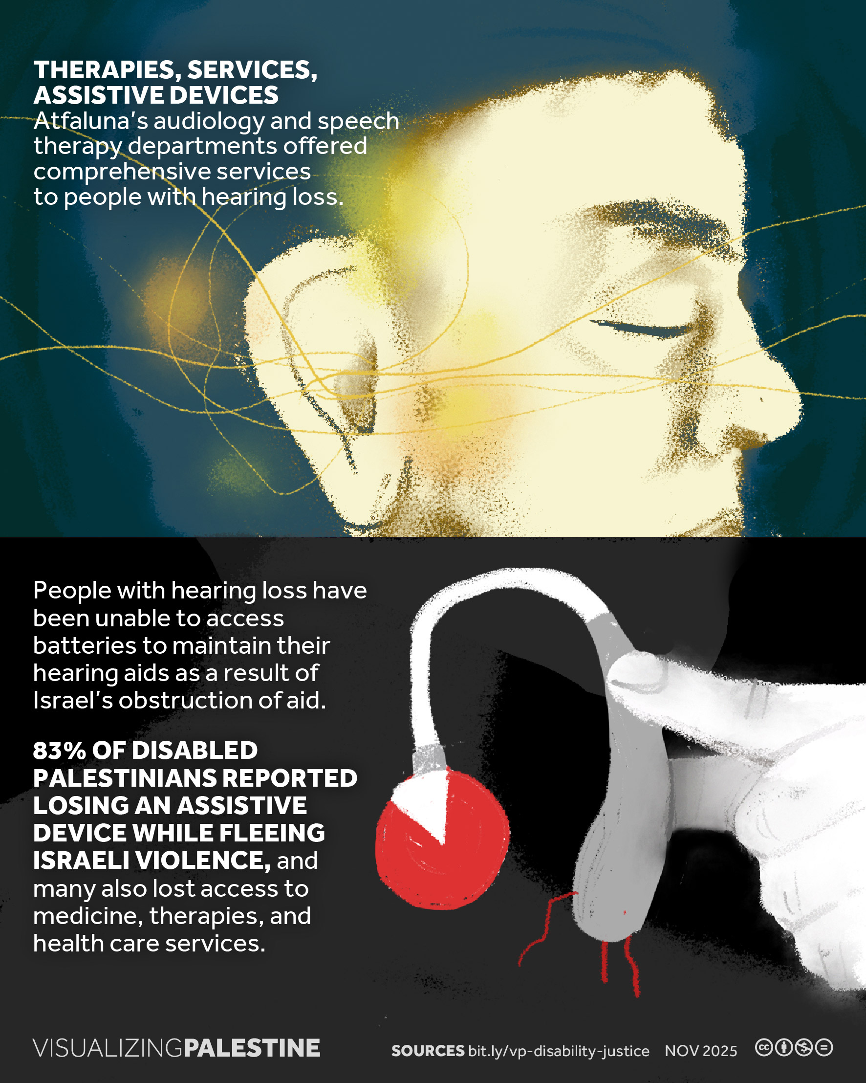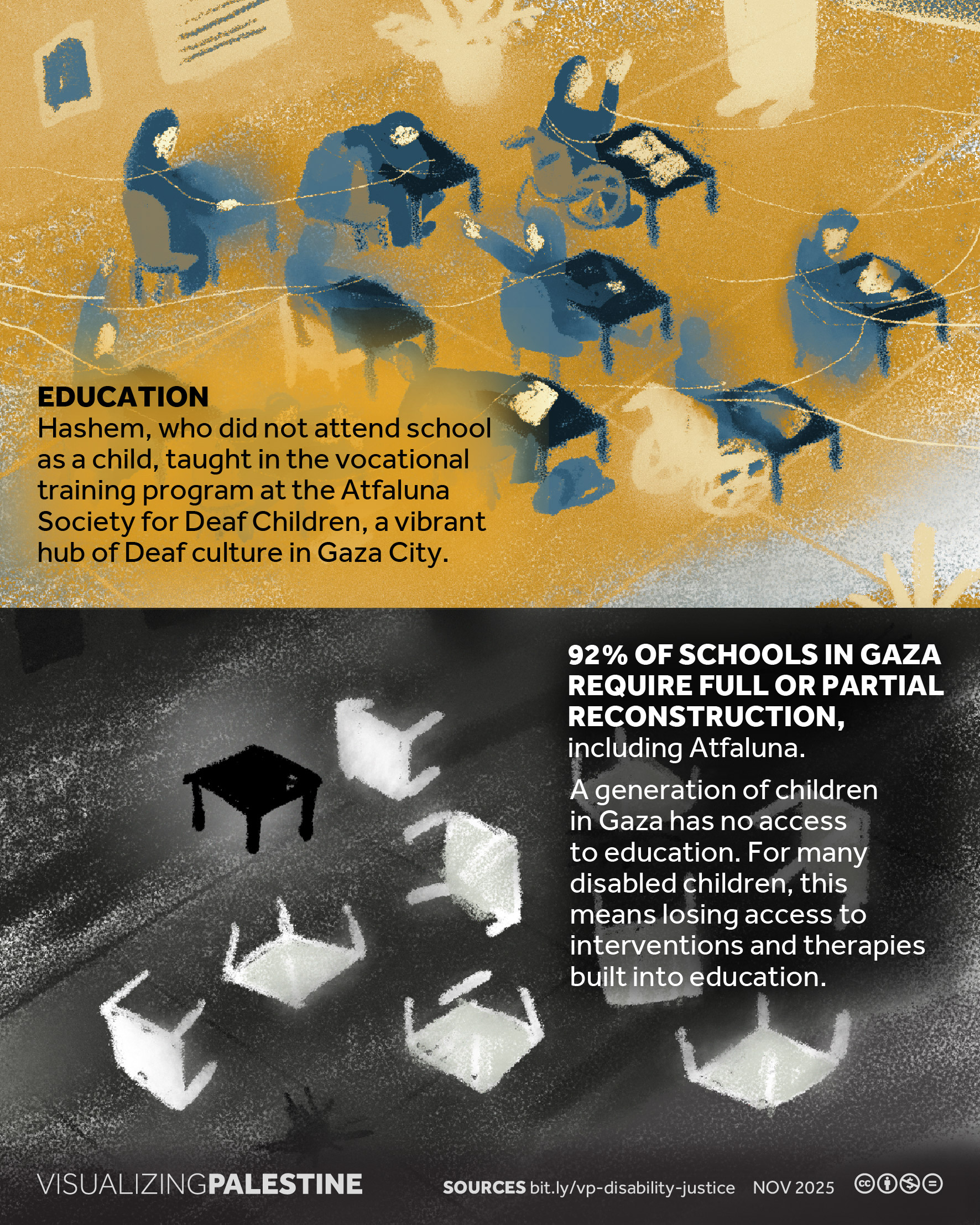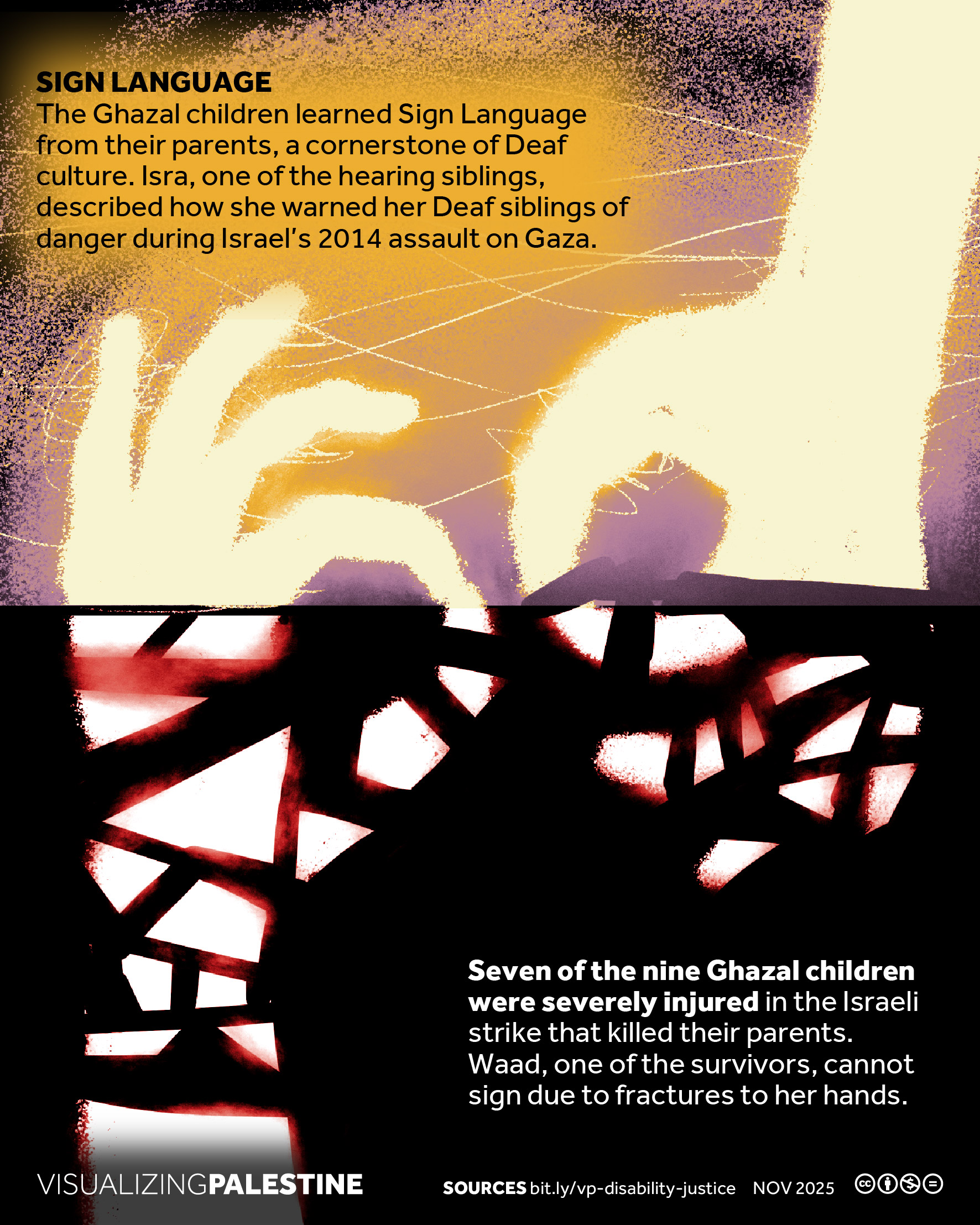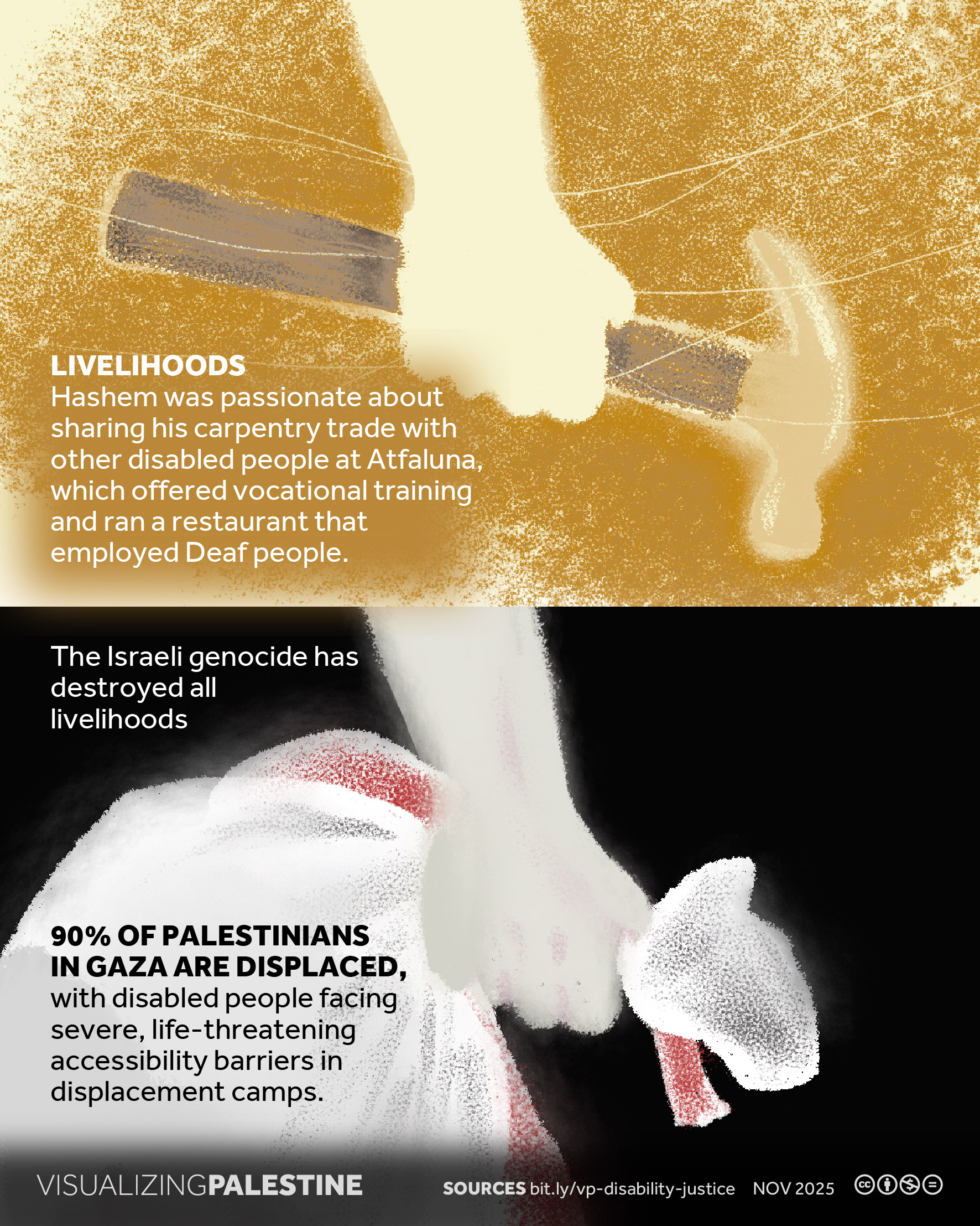 [November 2025]. This visual, created in consultation with a Palestinian network of Disability Justice researchers, shares the story of Hashem Ghazzal, a prominent Deaf community leader who dedicated his life to ensuring that Deaf Palestinians could live a life of dignity in Gaza.
